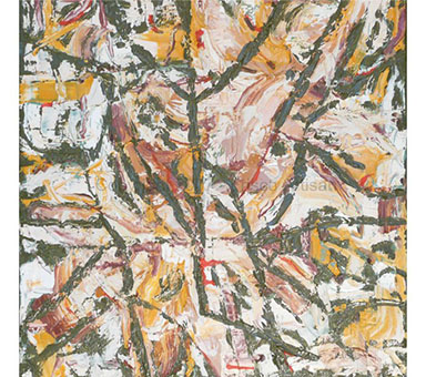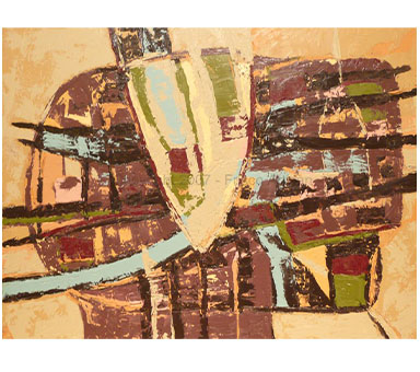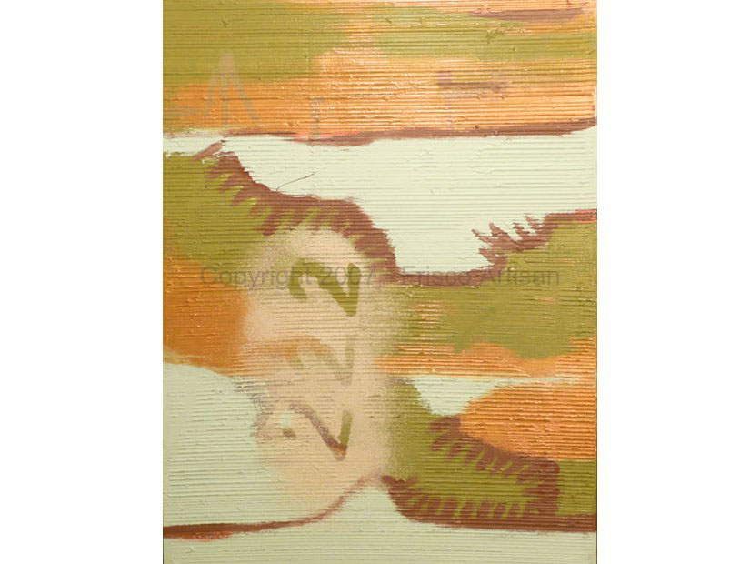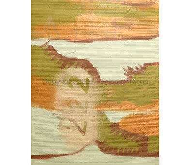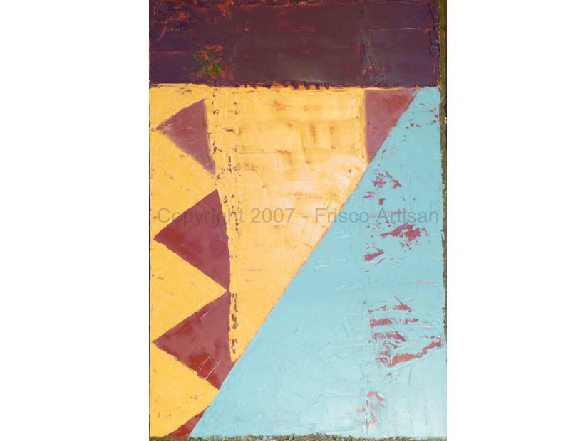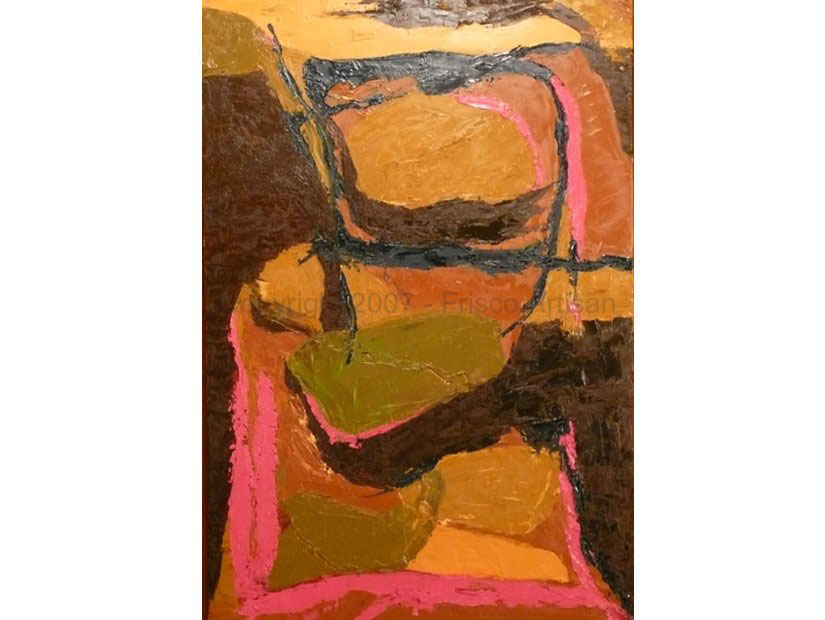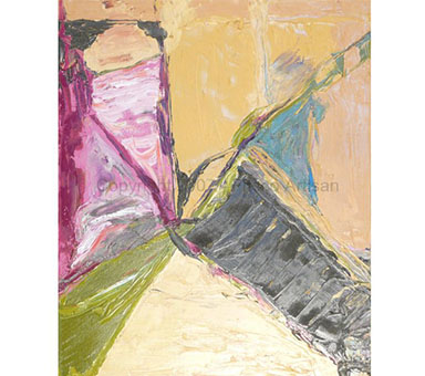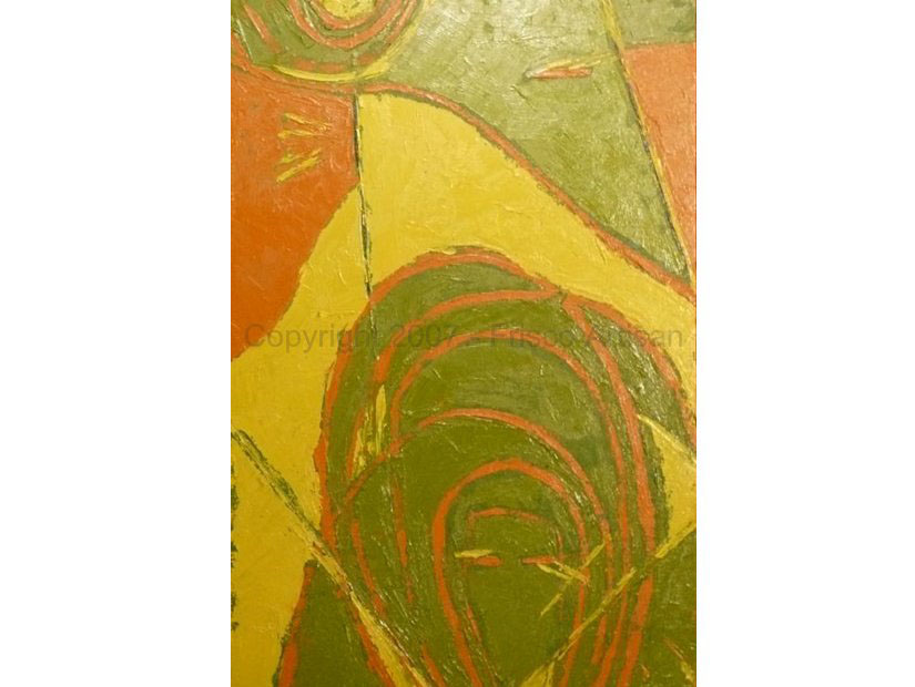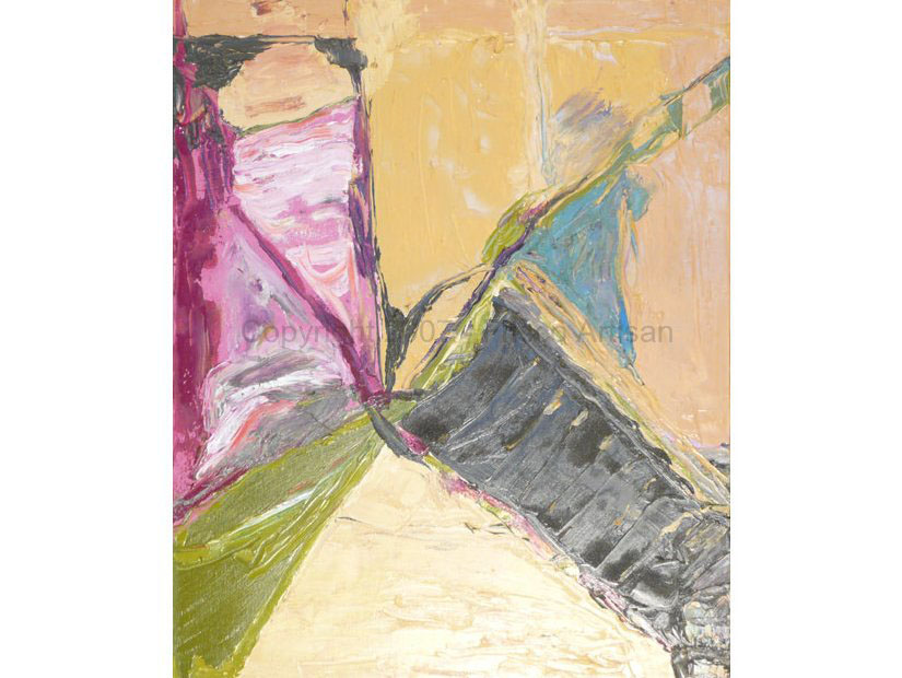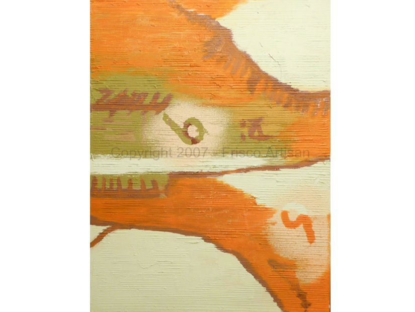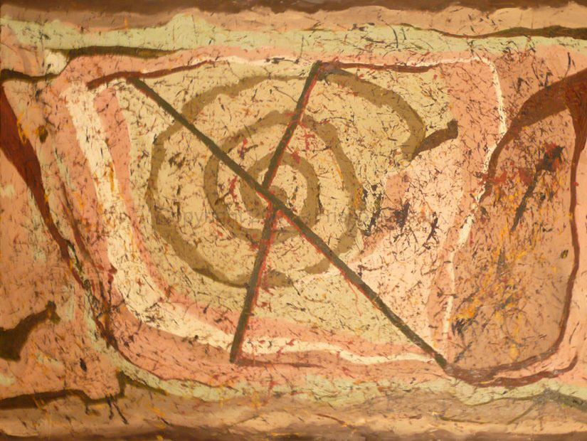 Oil on Canvas - size- 40" x 30" Date: 2002 Description: Merge of organic w/ man made shapes. String spatter added 2 years later
