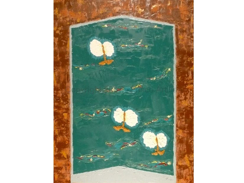 Oil on Canvas - size- 24" x 36" Date: 2006 Description: Woman's image rising from lake